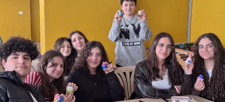Pour célébrer le dernier jour d’école avant les vacances de Pâques, la cour de récréation s'est transformée en un véritable terrain de jeu mathématique. Une belle manière d'apprendre en jouant. Զատկուան արձակուրդներէն առաջ դպրոցի վերջին օրը տօնելու համար, բակը վերածուեցաւ իսկական թուաբանական խաղավայրի։ Գեղեցիկ ձեւ մը՝ խաղալով սորվելու։