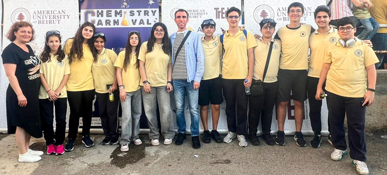 Ուրբաթ, 23 Մայիսին, կէսօրէ ետք, իններորդ դասարանի աշակերտները, իրենց ուսուցիչներէն երկուքին ընկերակցութեամբ, ներկայ գտնուեցան Պէյրութի Ամերիկեան Համալսարանի կազմակերպած «Քիմիագիտական Փառատօն»-ին (ChemCarnival)։⚗️ Այս գիտական հետաքրքրական միջոցառումը անոնց հնարաւորութիւն ընծայեց քիմիագիտութիւնը բացայայտելու զուարճալի ու կրթական փորձերու միջոցով։👩🏼🔬