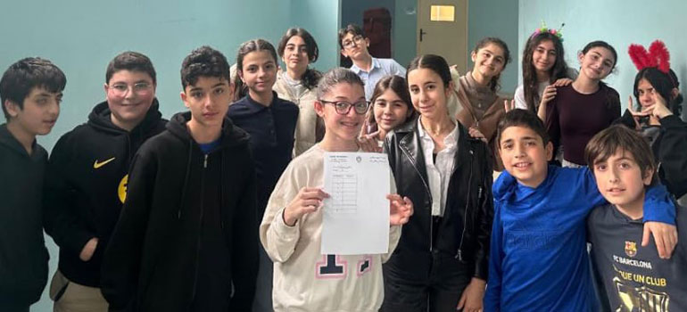 Զատկուան արձակուրդներէն առաջ դպրոցի վերջին օրը տօնելու համար, բակը վերածուեցաւ իսկական թուաբանական խաղավայրի։ Գեղեցիկ ձեւ մը՝ խաղալով սորվելու։