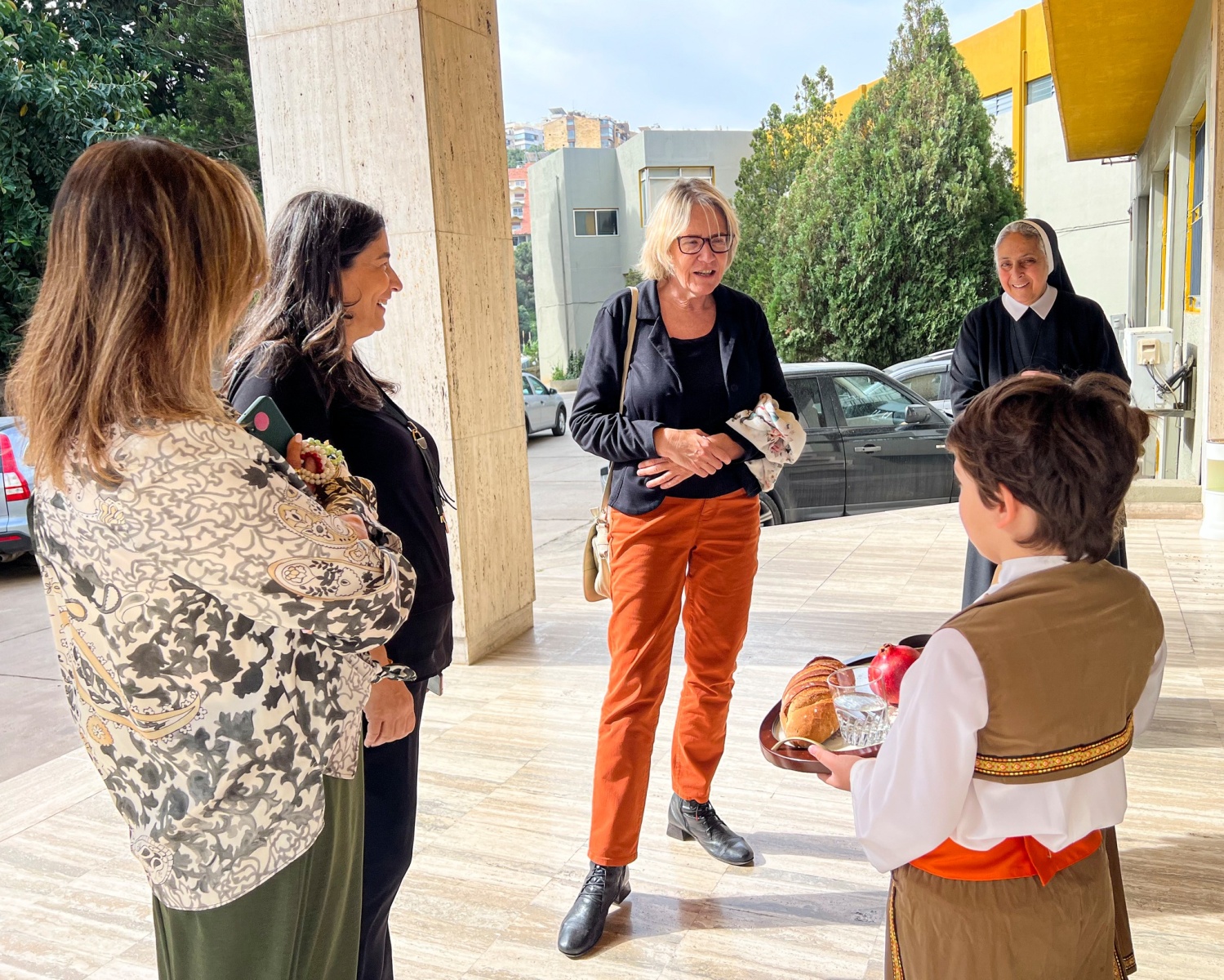 Aujourd’hui, nous avons eu l’honneur d’accueillir Mme Isabelle Picault, conseillère adjointe de coopération et d’action culturelle à l’ambassade de France au Liban. Sa visite a été l’occasion d’échanges enrichissants avec la direction, le conseil d’école, et les délégués de classe. Deux jeunes élèves ont perpétué la tradition arménienne en l’accueillant avec du pain, du sel et de l’eau, symboles de bienvenue et d’hospitalité.