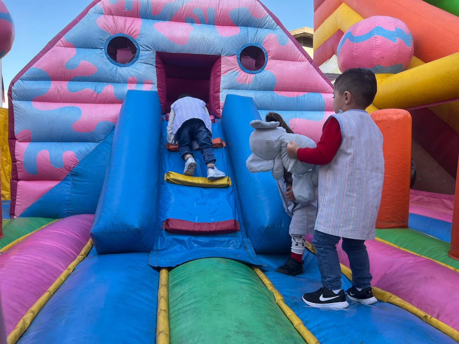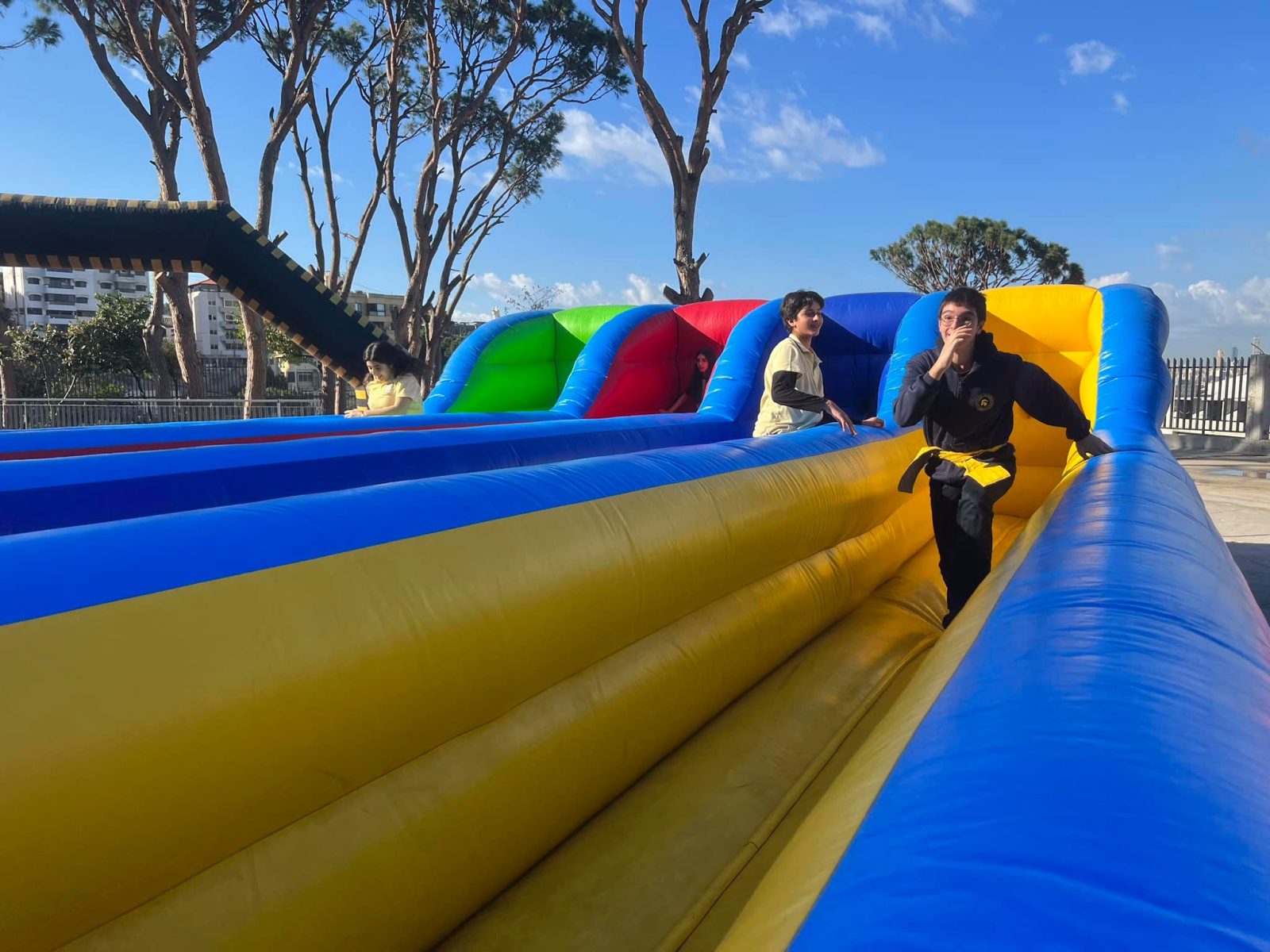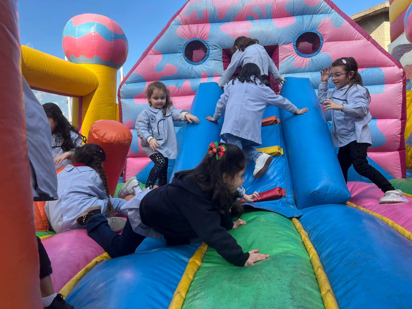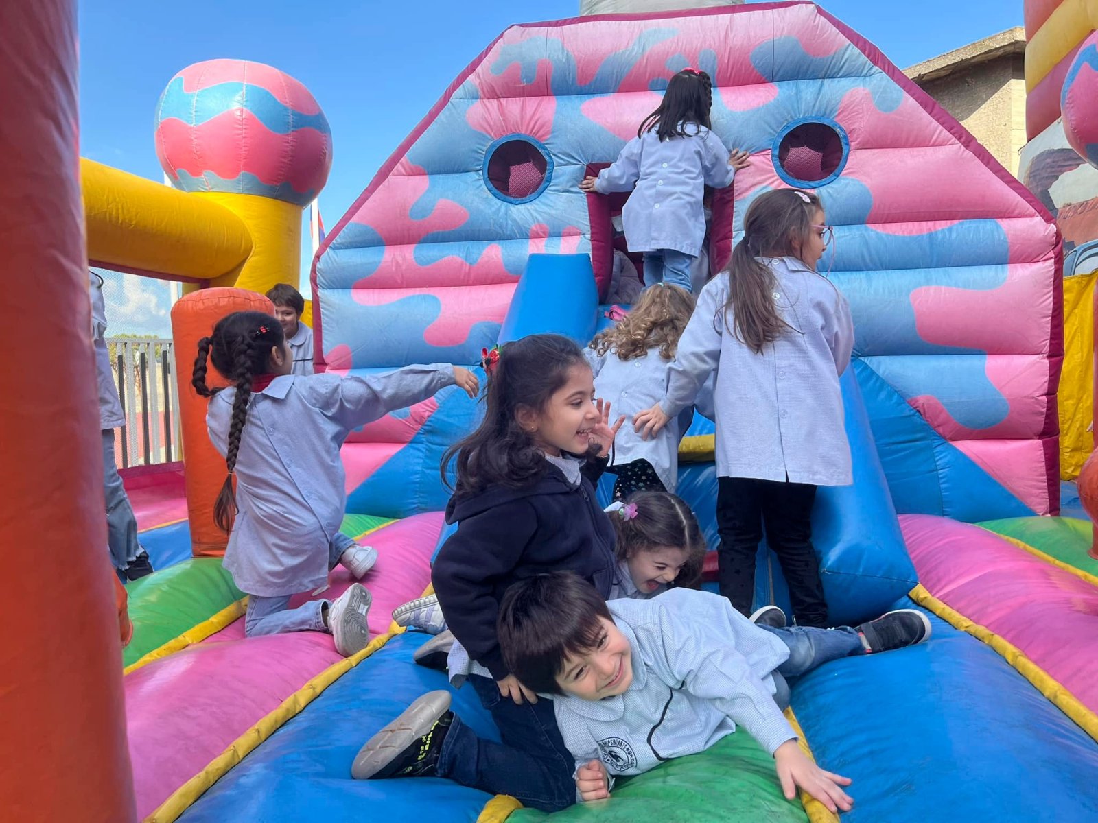 Un véritable terrain de jeux! Nos élèves se sont déchaînés sur les chateaux gonflables colorés et géants!🎢